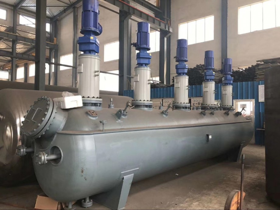 9、5000L外盤管加熱不銹鋼反應釜帶有多功能控溫、控壓數(shù)顯控制箱。加熱控制系統(tǒng)采用PID自動溫度控制儀表,溫度控制準。儀表經整定后,可有效控制溫度過沖。出料方式有上出料和下出料兩種。該系列產品具有運轉平穩(wěn)、噪音小、操作方便等特點,是實驗室進行各種化學反應的理想裝置。